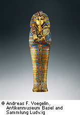 L´esposizione, che apre al Museo d´Arte della Contea di Los Angeles il 16 giugno 2005, offre 50 straordinari oggetti funerari dalla tomba del faraone (scoperta dall´inglese Howard Carter nel 1922) e 70 pezzi di altre antiche tombe e templi, tutti databili dal 1550 al 1305 a.C. In prestito dal Museo Nazionale del Cairo, questo insieme di reperti eccezionalmente ben preservati, include gioielleria, mobilio e vasi cosmetici squisitamente incisi e dipinti. Altri elementi sono costituiti da un busto di Tutankhamun di legno a grandezza naturale, che potrebbe essere stato usato come manichino per gli indumenti reali; un sarcofago d´oro in miniatura che una volta conteneva i resti delle sue viscere; e la prima scansione tomografica della mummia del giovane re, condotta sotto la supervisione di Zahi Hawass, segretario generale del Supremo Consiglio di Antichità Egiziano.