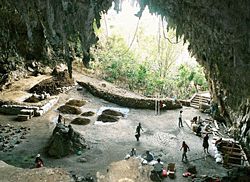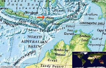 I reperti suggeriscono che il cugino umano dalle grandi ossa, l´Homo Erectus, migrò da Java a Flores ed alte isole, forse su canoe di bambù, più o meno un milione di anni or sono.