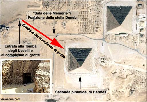 Dall'ingresso delle grotte sembra che si possa viaggiare verso la seconda piramide e direttamente sotto il punto in cui la stella del Cigno, Deneb, sarebbe in linea con le tre piramidi e le ali del Cigno. È in questo punto, che troveremo la famosa "Sala delle Memorie"? E' volontà del governo egiziano consentire al mondo di sapere che cosa è davvero lì? Perché devono essere così gelosi del segreto?