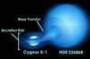 Ma la luce a raggi-X non è costante. Lampeggia e fornisce la prova che identifica il membro scuro della stella binaria come un buco nero. Il gas entra dal bordo esterno del disco di accrescimento poi si muove in spirali più vicino alla stella. Se il centro del disco contenesse una stella normale, o anche una stella di neutroni superdensa, il disco risulterebbe più caldo e luminoso fino in fondo al suo centro, con i brillanti raggi X provenienti dal centro. Invece, il bagliore dei raggi X taglia ben al di fuori del centro del disco. Osservazioni con telescopio spaziale Hubble mostrano che la regione centrale produce occasionalmente macchie di interruzione di gas intorno al bordo interno del disco e alla spirale nel buco nero.