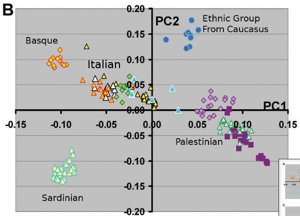 Una prova di ciò è fornita da questa analisi delle componenti principali delle popolazioni europee meridionali: