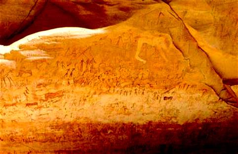 Gli archeologi stanno studiando i disegni rupestri preistorici scoperti in una remota caverna, nel 2002, con figure danzanti e strane bestie senza testa, che propongono nuovi indizi circa la nascita della civiltà egizia.Esploratori dilettanti sono imbattuto nel grotta, che comprende 5.000 immagini dipinte o incise nella pietra, nel vasto deserto vicino al confine sud-ovest dell'Egitto con la Libia e il Sudan.