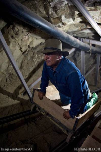 Nel novembre del 2007 è cominciata una seconda missione, condotta da Zahi Hawass, che ha utilizzato un sistema di carrelli di miniera per rimuovere i detriti.Il team ha poi rinforzato le pareti e il soffitto con supporti di metallo e ha coperto la scala originale di pietra per evitare di danneggiarla.Durante gli scavi sono stati scoperti molti ushabti (o shabti, delle statuette funerarie) e frammenti di ceramica datati alla 18′ Dinastia (1569-1315 a.C.), cartigli in calcare di Seti I (che fa parte della 19′ dinastia) e un modello di piccola barca fatta con della cosiddetta faience egizia. Sulle stesse scale sono stati rinvenuti graffiti rossi sopra tre gradini.Al di là della sezione parzialmente scavata dagli uomini di Abdel-Rasoul, il team di Hawass si è imbattuto in un grande corridoio lungo 25.6 metri e largo 2.6. All'inizio di questo passaggio si trovava una porta falsa decorata con del testo ieratico (la forma di scrittura dell'Antico Egitto), delle istruzioni per gli operai: "Spostare verso l'alto lo stipite della porta e allargare il corridoio" ("Move the door jamb up and make the passage wider").