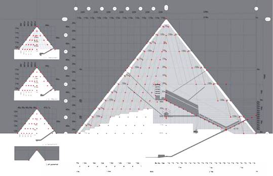 Basta che l'architetto conosca le dimensioni principali di una piramide, e può proiettare l'edificio come farebbe con un edificio moderno, ma seguendo i metodi costruttivi e le misure noti nell'antico Egitto, dice Bryn.