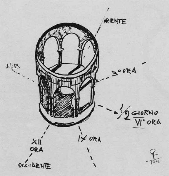 L'Iconografia Rateriana che pone chiaramente il lato orientale a destra di chi guarda, mette in piena luce lo parte funzionale dell'orologio solare: i quattro archi visibili della loggia "Organum".Ogni arco, come dicemmo, determina l'ora quaternaria composta di tre ore temporali, pertanto nel settore od arco rivolto ad oriente viene letto il primo orario, ossia l'ora terza, mentre nel secondo arco si rileva lo sesta ora che chiude con lo colonna centrale, mentre continuando troviamo lo nona ora e nell'ultimo arco seminascosto lo successiva dodicesima, che chiuderà il ciclo col tramonto solare.