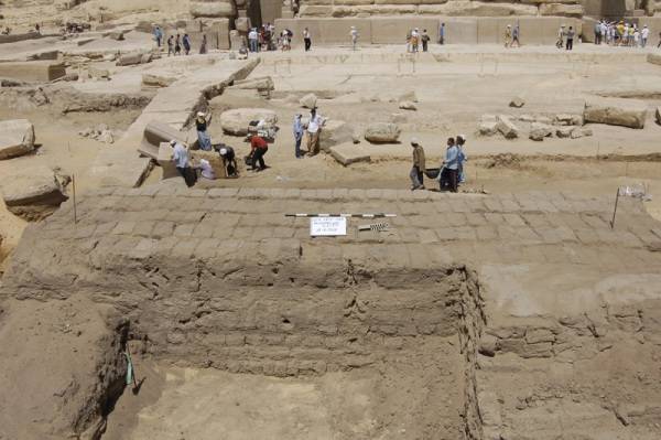 Si è provato pure a scavare davanti al tempio a valle di Chefren negli strati risalenti al Medio Regno (cominciato all'incirca verso il 2000 a.C.) ma si è trovata solo sabbia, dunque è possibile che a quell'epoca l'insediamento fosse già abbandonato.