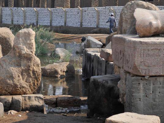 Un antico tempio egizio al dio Ptah nel villaggio di Meet Rahina vicino a Memphis, appena a sud del Cairo, ora si trova immerso nelle acque di scarico delle acque comunali.