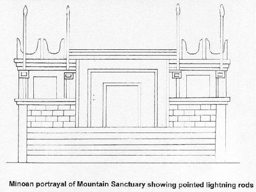 L'Archeologo greco Chryssoula Kardara, nel suo esame delle immagini d'arte minoica di siti tempio montagna a Creta, molti dei quali risalgono al XVI secolo aC, crede che tutti avevano parafulmini. Questi santuari erano legati al culto del tuono, e testi Minoan ha parlato della capacità del sacerdotesse 'attraverso le aste di portare non solo gli scarichi giù dal cielo, ma anche pioggia. Le aste erano raffigurate come a punta lunga lancia-come pali equidistanti si estende verso il cielo alto sopra il recinto sacro, e si diceva che erano fatte di rame. Le tradizioni Minoan dicevano che queste aste erano state progettate da una misteriosa razza specializzata nella lavorazione del metallo chiamati i "Telchini". Conoscenze di una civiltà preistoriche che si erano dimenticate?