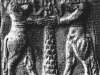 I testi identificare ulteriori Shamash come il "dio faro" e il disco solare, che egli affronta e manipola è rappresentato come "per il cielo e la terra con lustro." Prima che il disco d'oro vengono tre sacerdote-fedeli con le mani alzate nella sua adorazione e in protezione da suo splendore.