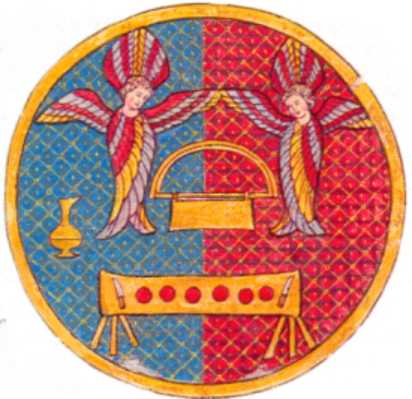 Secondo elemento: i cherubini, che sovrastavano il propiziatorio. Unica raffigurazione permessa nella tenda-santuario, i cherubini erano esseri metà umani e metà animali ed erano già presenti nell´arte sacra orientale come custodi del tempio e del palazzo reale. Ne troviamo esempi nell´iconografia di molti popoli dell´antico oriente.