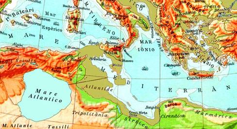 Secondo le mie ricerche, prima della catastrofe esisteva una vasta pianura fertile, come quella descritta da Platone, al largo delle attuali coste tunisine, compresa tra la Piccola Sirte, l'attuale Golfo di Gabès e - a nord - la penisola di Capo Bon e l'estremità occidentale della Sicilia. Essa avrebbe costituito "l'estremo occidente" del bacino Mediterraneo in cui navigavano i Pelasgi, i mitici abitatori dell'antico Mediterraneo, e sarebbe stata popolata di elefanti e altre fiere africane, con datteri e banane, come dice Platone, protetta dai venti freddi perché avvolta dai rilievi di Tunisia e Sicilia. In questa zona erano le "colonne d'Erakles" del mito greco, con i miti collegati con l'Aldilà e il regno dei morti, il Giardino delle Esperidi e il regno di Atlante.