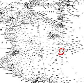 Nel Mediterraneo orientale, le quote d'affondamento sono ben superiori a quelle di altri mari. Una gran parte del fondo del Mediterraneo sembra costituita da rupi e vallate, come se non si trattasse di fondo marino, ma piuttosto di terraferma; infatti capita di continuo che i pescatori subacquei scoprano strade ed edifici molto più antichi e situati a maggiori profondità negli abissi marini. Appare significativo - ad esempio - il nome di "Banco Medina" (Medina, in arabo, significa città) dato al fondale che - nelle mie ipotesi - corrisponde alla giacitura dell'antica capitale di Atlantide… Sprofondamenti ancora più notevoli di edifici e di città preistoriche sono stati notati nei pressi di Thera e vicino a Milo.
