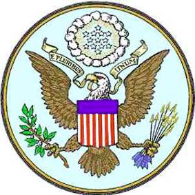 ARMI: Tredici fasce verticali, argento e rosso; capo azzurro; lo scudo è posto sul petto dell'aquila americana visualizzata adeguatamente, che brandisce nel suo artiglio destro un ramoscello di ulivo e nel sinistro un mazzo di tredici frecce, e nel becco una pergamena, con il motto "E PLURIBUS UNUM". Per il CREST: sopra la testa dell'Aquila, appare sopra lo scudo una gloria, che irrompe attraverso una nube, corretta e circostante tredici stelle, formando una costellazione d'argento, su un campo azzurro. VERSO: Una piramide incompiuta. Allo zenith, un occhio in un triangolo, circondato da una gloria. Sopra l'occhio queste parole: "ANNUIT COEPTIS". Sulla base della piramide le lettere numeriche MDCCLXXVI. E sotto il seguente motto: "NOVUS ORDO SECLORUM".
